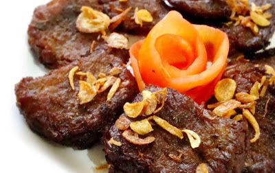 Memasak tetelan daging sapi segar menjadi masakan yang khas yaitu tetelan bakar dengan rasa yang mantap dan gurih.